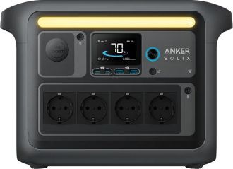 Зарядна станція Anker SOLIX C1000 1056Wh (A1761311) являє собою багатофункціональний пристрій для забезпечення автономного електроживлення. SOLIX C1000 оснащена чотирма розетками AC 230В, двома портами USB Type-C, двома USB Type-A, автомобільною розеткою і роз'ємом XT60, що дає змогу під'єднувати широкий спектр пристроїв. Anker SOLIX C1000 характеризується номінальною потужністю 1800 Вт і піковою потужністю 2400 Вт, забезпечуючи можливість живлення енергоємних приладів. Порти USB Type-C підтримують потужність до 100 Вт і 30 Вт із протоколом швидкого заряджання PD 3.0, а USB Type-A - до 24 Вт із підтримкою QC 3.0. Автомобільна розетка забезпечує потужність до 120 Вт. Пристрій генерує чистий синусоїдальний сигнал, що важливо для чутливої електроніки. В основі Anker SOLIX C1000 лежить акумулятор технології LiFePO4 ємністю 1056 Вт-год, розрахований на більш ніж 3000 циклів зарядки. Станція підтримує функцію ДБЖ, що дає змогу використовувати її як джерело безперебійного живлення. Зарядка SOLIX C1000 можлива від мережі 230В з потужністю до 1300 Вт, що забезпечує повний заряд за 1 годину, а також від сонячної панелі потужністю до 600 Вт за 1,8 години. Зарядна станція Anker SOLIX C1000 обладнана інформативним дисплеєм, вбудованим ліхтариком і підтримує віддалене управління. Пристрій важить 12,9 кг і оснащений зручною ручкою для перенесення. SOLIX C1000 має конструкцію із захистом від падіння, ультрафіолету та вогню, що підвищує її надійність у різних умовах експлуатації. Anker SOLIX C1000 1056Wh (A1761311) надає можливість під'єднання додаткових батарей і сонячних панелей, що робить її масштабованим рішенням для різних сценаріїв використання - від походів і виїзних заходів до резервного джерела живлення для дому або офісу.