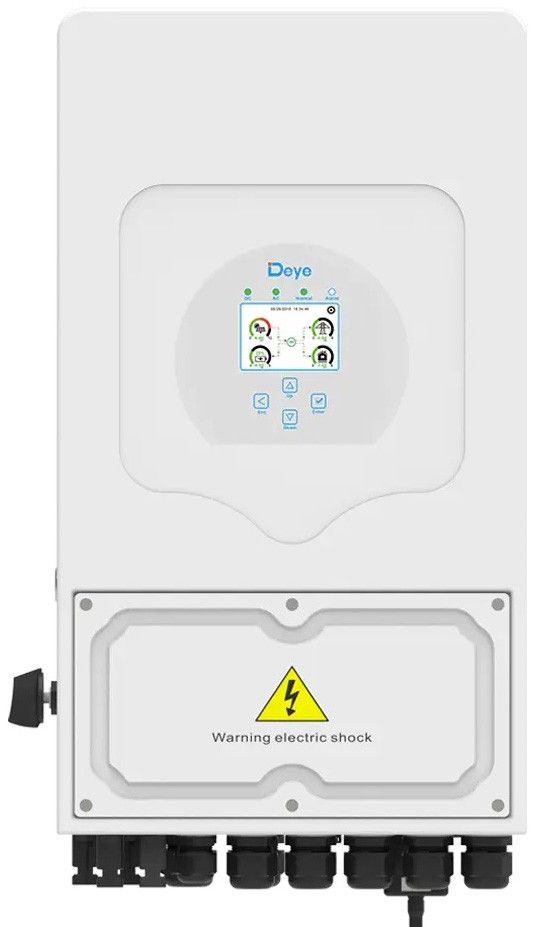 Гібридний інвертор Deye SUN-8K-SG05LP1-EU - це однофазний пристрій потужністю 8 кВт, призначений для ефективного управління енергією в домашніх і невеликих комерційних сонячних системах. Він підтримує роботу з низьковольтними батареями (48 В) і оснащений двома незалежними трекерами максимальної точки потужності (MPPT), що забезпечує оптимальну продуктивність за різних умов освітлення. Інвертор здатний працювати в паралельному режимі, підтримуючи до 16 пристроїв, що дає змогу масштабувати систему залежно від потреб. Він сумісний з дизельними генераторами, забезпечуючи додаткову гнучкість в управлінні енергією. Функція "час використання" і можливість обмеження експорту енергії сприяють підвищенню рівня самозабезпеченості та ефективності системи. Пристрій оснащено кольоровим сенсорним РК-дисплеєм для зручного моніторингу та управління параметрами роботи. Ступінь захисту IP65 гарантує надійну роботу інвертора Deye SUN-8K-SG05LP1-EU в різних умовах навколишнього середовища. Інтелектуальна система охолодження і низький рівень шуму (менше 30 дБ) забезпечують комфортну експлуатацію. Габаритні розміри інвертора становлять 330x580x232 мм, а вага - 24,9 кг, що полегшує його встановлення та інтеграцію в наявні системи. Виробник надає гарантію на 5 або 10 років залежно від місця встановлення та умов експлуатації. Завдяки своїм технічним характеристикам і функціональним можливостям, Deye SUN-8K-SG05LP1-EU є надійним рішенням для ефективного управління енергією в сучасних сонячних установках.