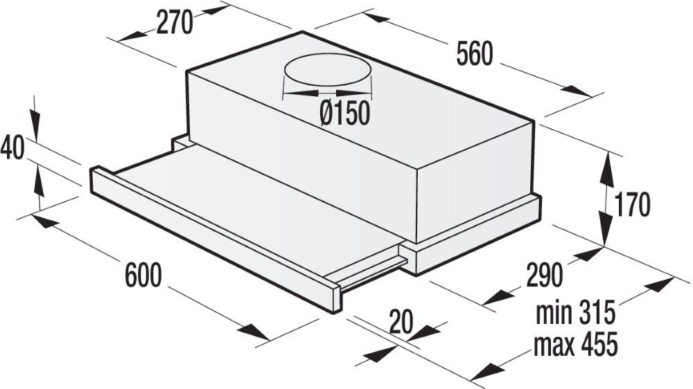 Розміри (ВхШхГ):315-455 х 600 х 170 см