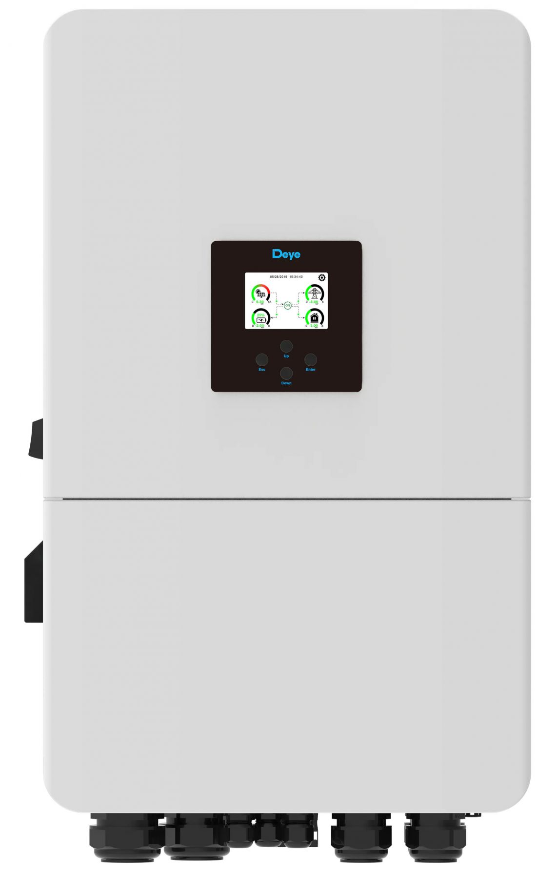 Додатково:100% небалансований вихід по шкірній фазі. Макс. вихід 50% від загальної потужності на одну фазу. Зв'язок із змінним струмом для модернізації існуючої сонячної системи. Макс. 10 шт. паралельно on-grid та off-grid. Підтримка підключення кількох батарей паралельно. Низьковольтна батарея 48V, трансформаторна ізоляція. 6 періодів години для заряджання/розряджання аккумулятора. Підтримка дизель-генератора.
